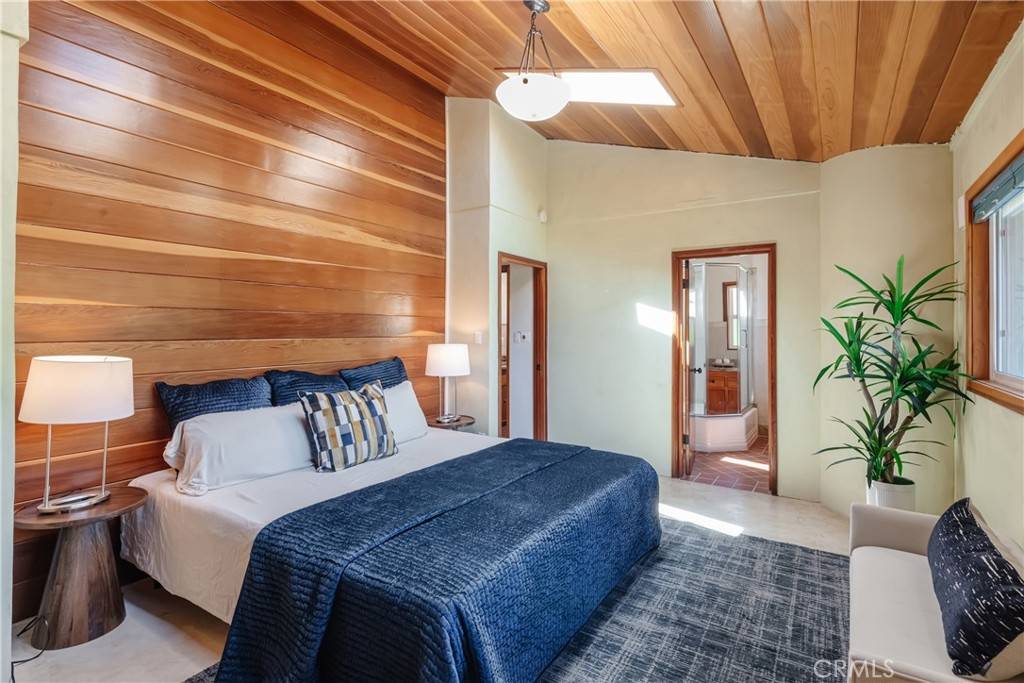 Inside, you're welcomed by soaring custom wood cathedral ceilings & an abundance of natural light from skylights & large windows. Venetian plaster & clay walls with mineral pigments for a refined, eco-conscious touch. The home offers plenty of space with 3 bedrooms, 2.5 bathrooms & an enormous family room.